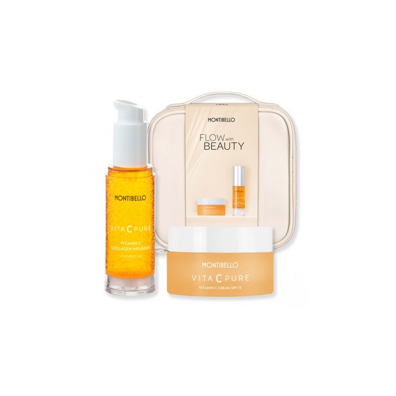 Pack Navidad Cream Vita C Pure Montibello es el pack de Navidad para todos los que quieren un tratamiento antioxidante. Con todo el poder de la vitamina C, su aplicación diaria da como resultado un extra de luminosidad y un aspecto saludable del rostro. Con este pack, combatirás los primeros signos de envejecimiento cutáneo, como son las primeras arrugas, la falta de elasticidad y las manchas oscuras..